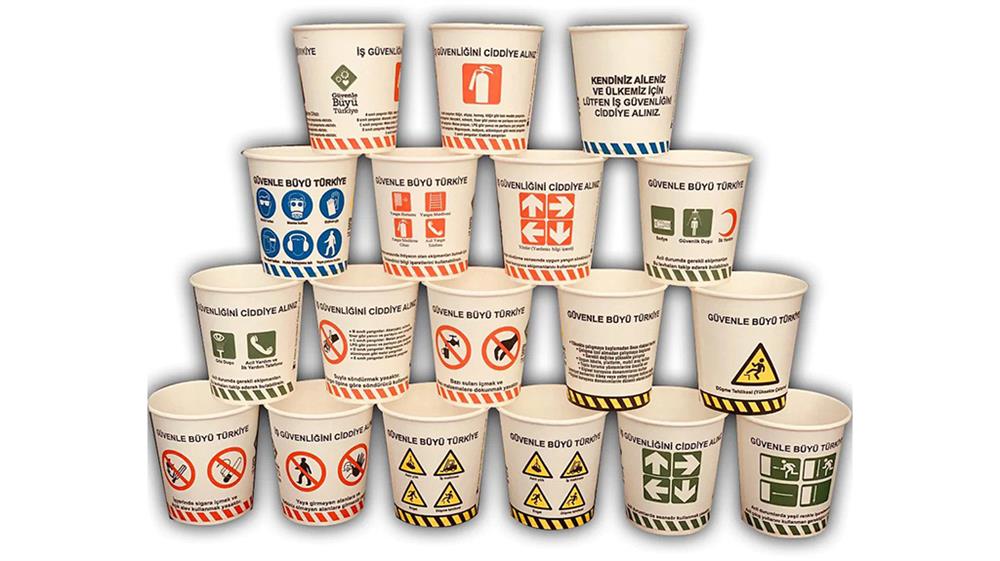 İşletmelerde bir çok çalışan bardaklarla sıvı tüketebiliyor.Uyarıcı levhaların dikkate alınmadığı durumlarda bu karton bardaklar etkili olabilir. Dolayısıya iş güvenliği baskılı karton bardaklar çıkmıştır. Bu yöntem gayet etkili ve güvenilirdir.